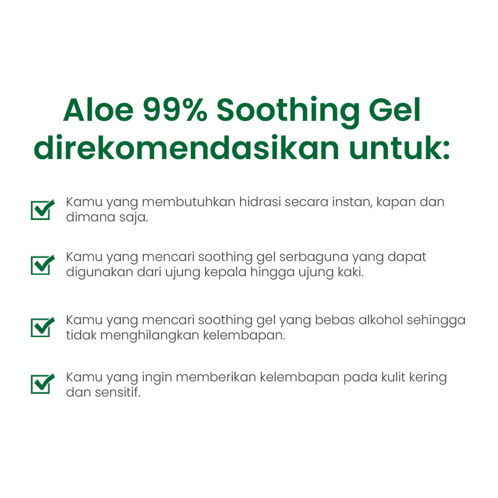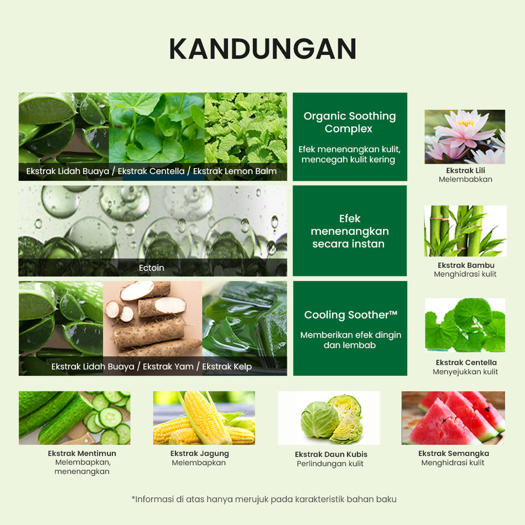 Soothing jel versi baru yang mengandung 99% lidah buaya Jeju ORGANIK yang di jus bukan di ekstrak dari hasil fermentasi sehingga dapat memberikan hasil yang lebih maksimal.
