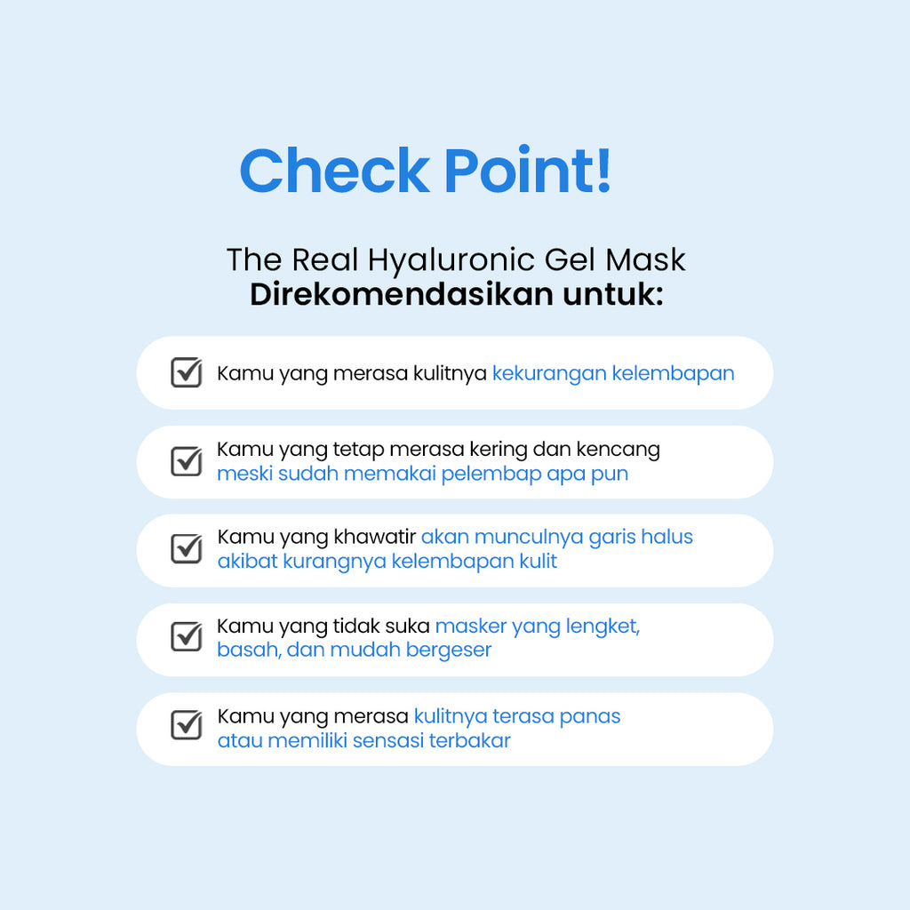 Masker hidrogel memiliki tekstur yang cenderung licin dan rapuh, harap berhati-hati dalam mengeluarkan produk untuk menghindari kerusakan pada lembaran masker.